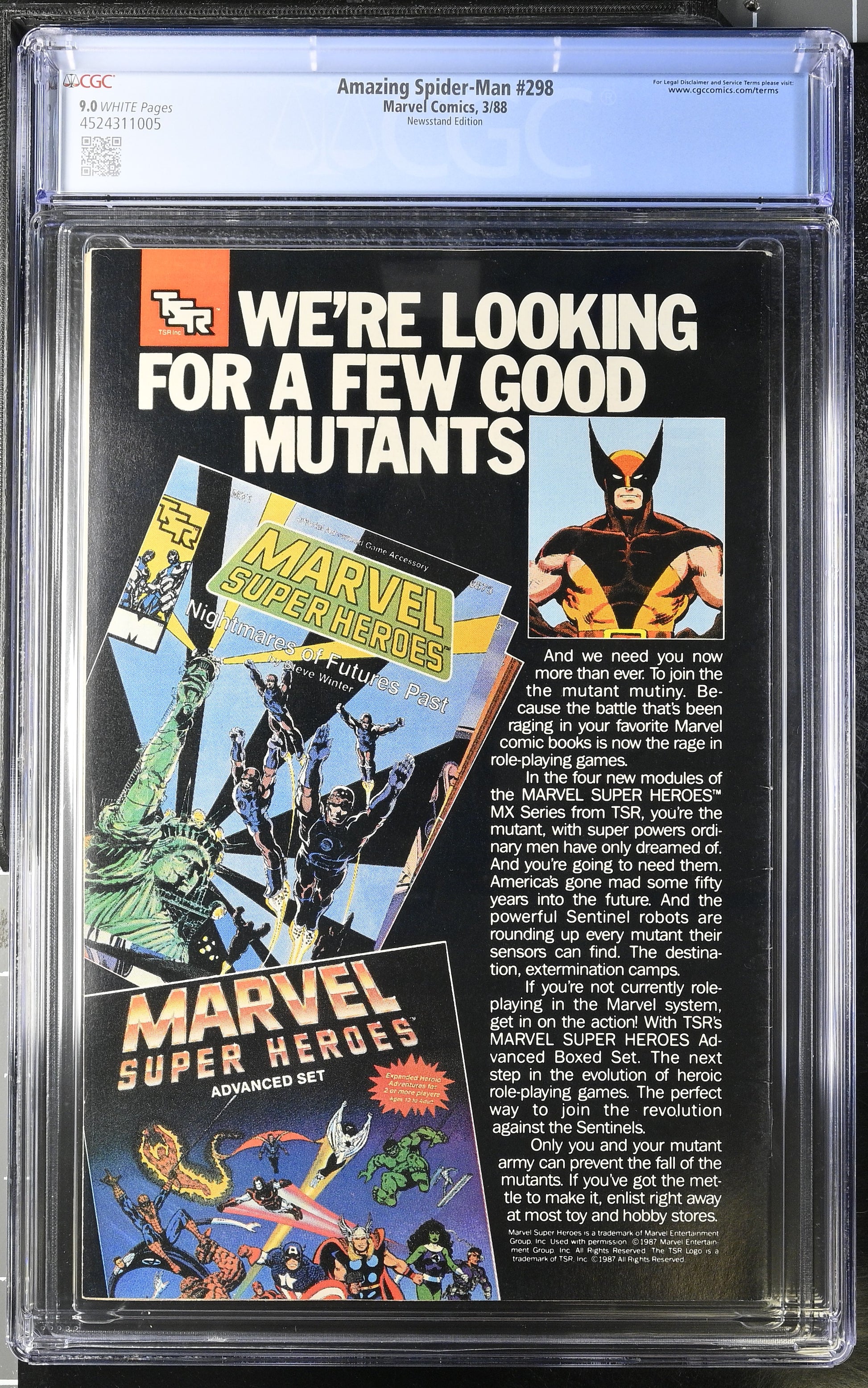 π AMAZING SPIDER-MAN #298 CGC 9.0 NEWSSTAND MARVEL TODD MCFARLANE COMIC 1988