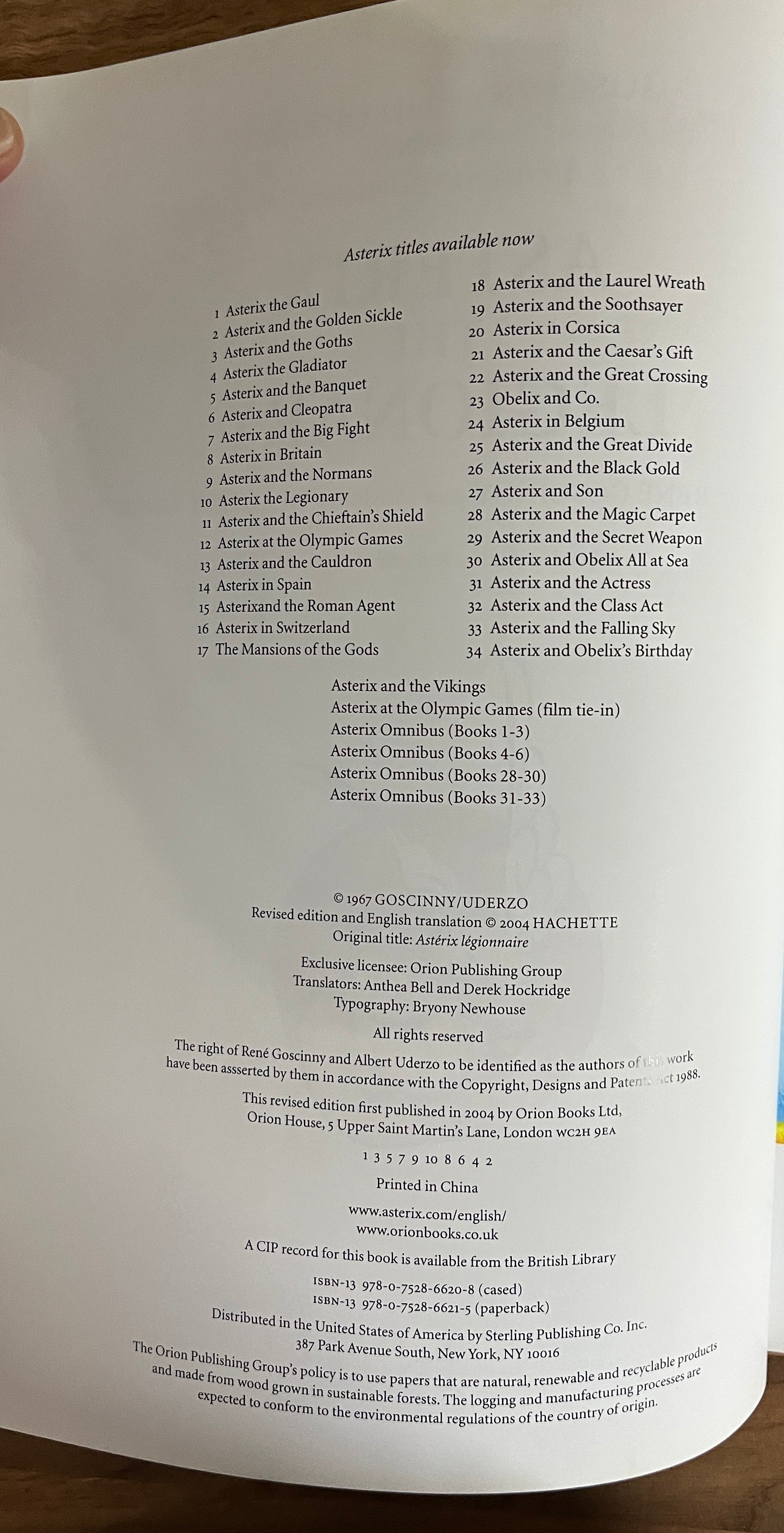 Asterix The Legionary by R. Goscinny & A. Uderzo Orion Pubs, 2004, 1st Print