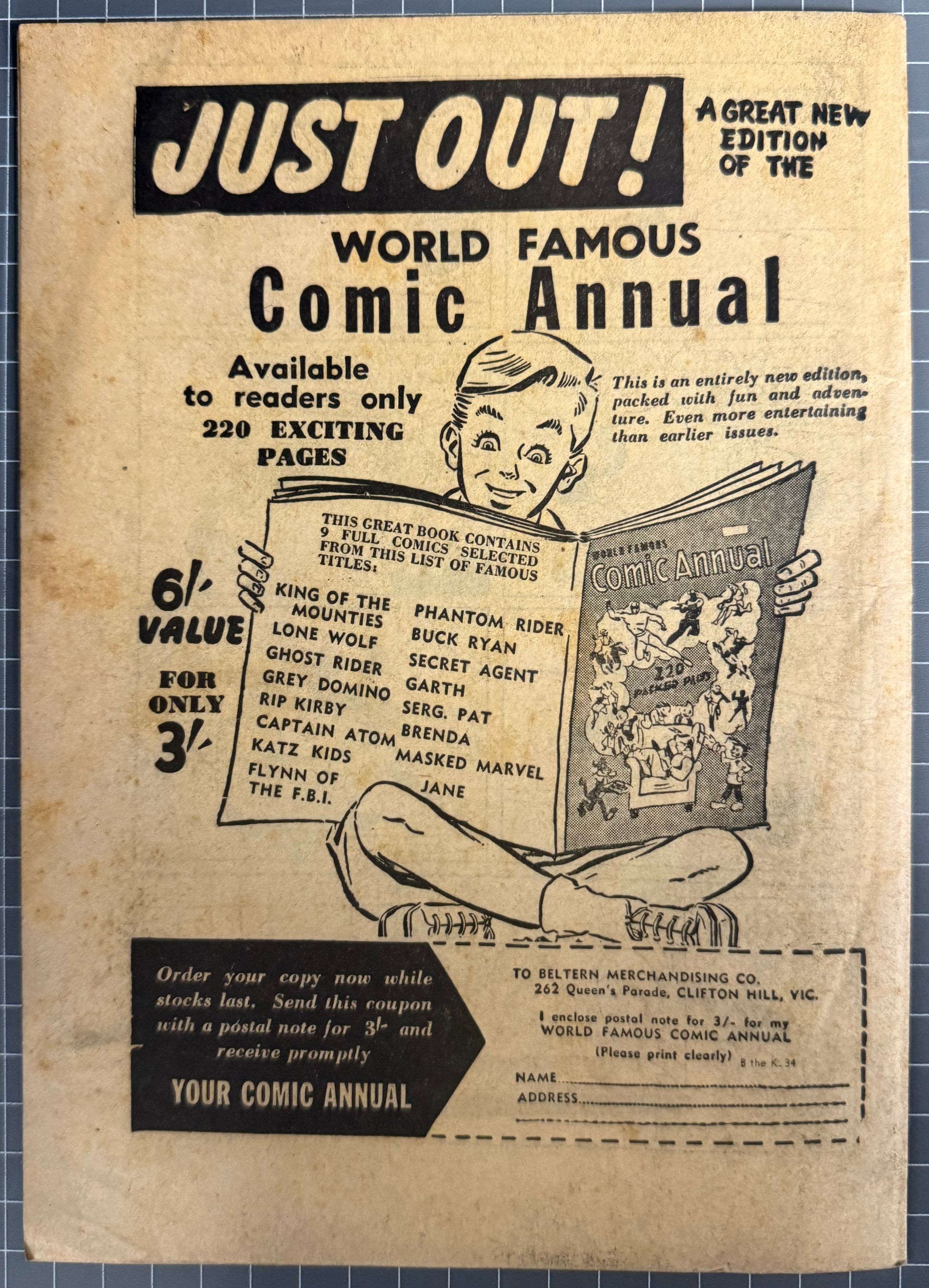 BILLY THE KID #34 (ATLAS PUBLICATIONS) AUSTRALIAN WESTERN PRE-DECIMAL COMIC 1958