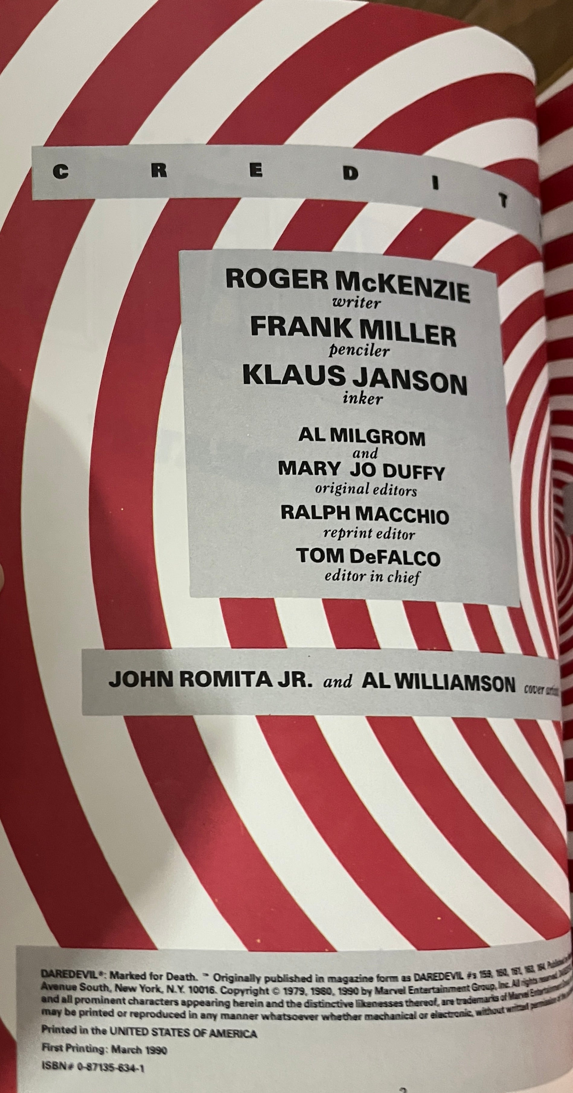 Daredevil: Marked for Death Graphic Novel by Roger McKenzie, Frank Miller March 1990