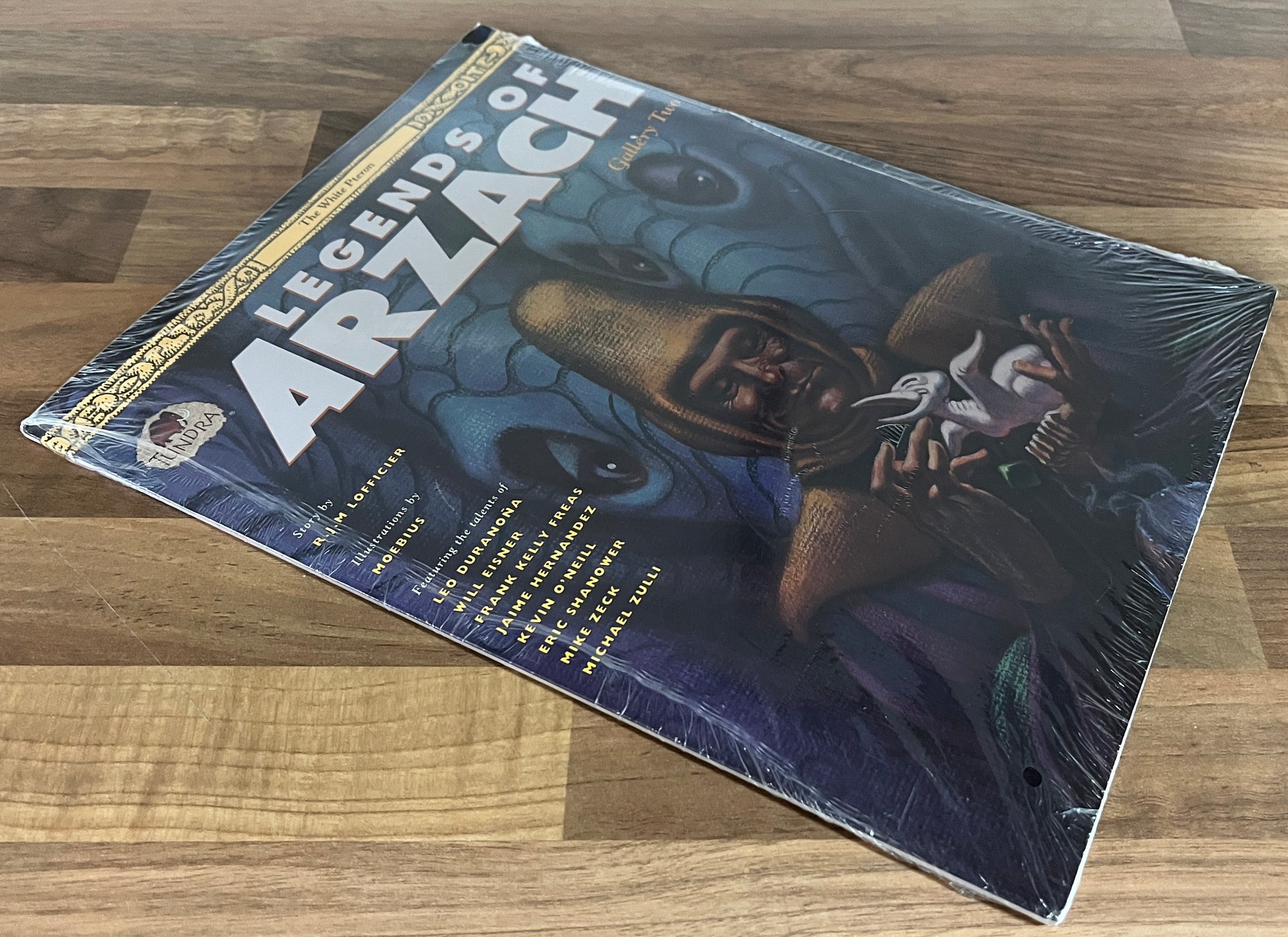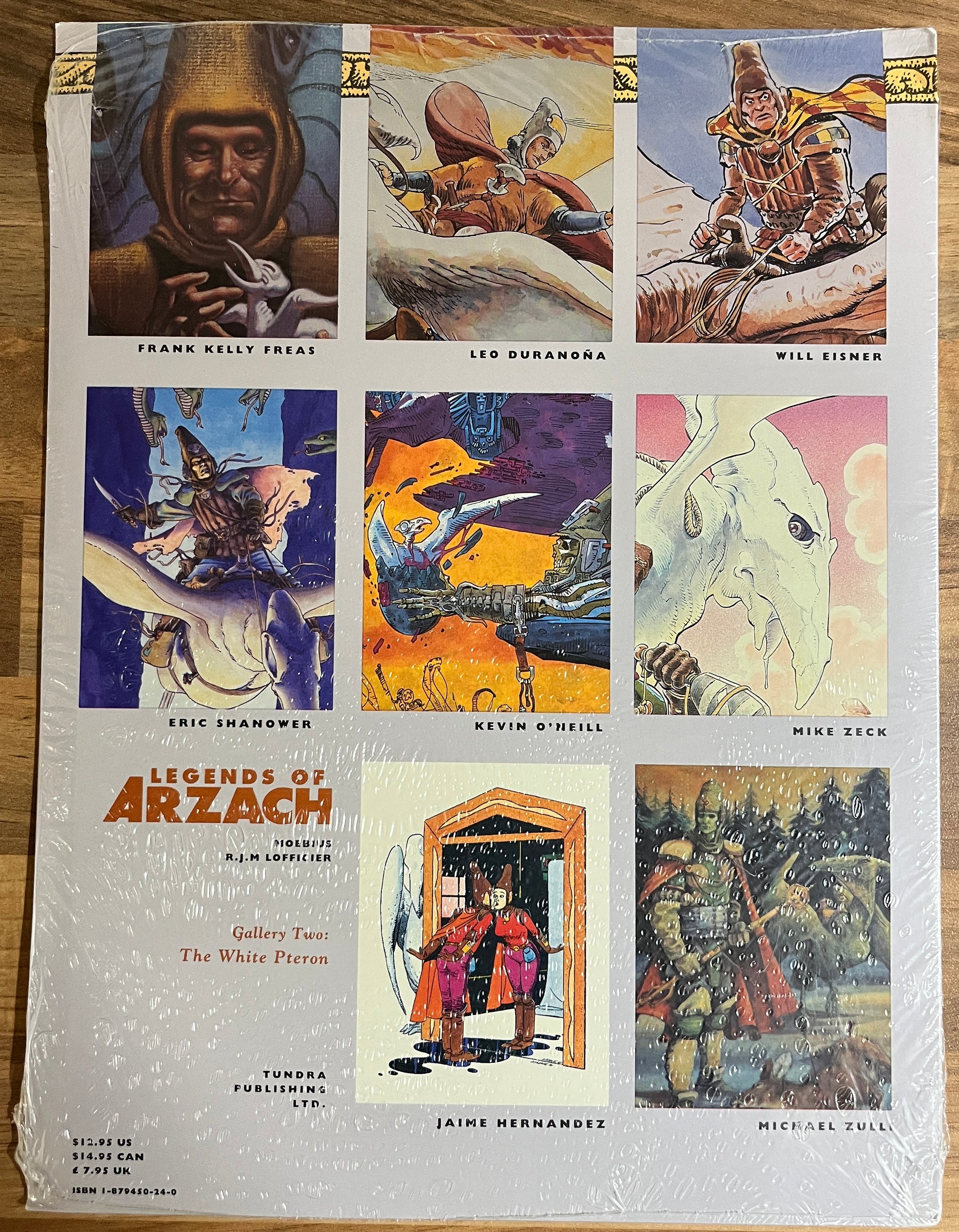 Portfolio containing 8 prints, inspired by Moebius's Arzach, drawn by: Leo Durañona, Will Eisner, Frank Kelly Freas, Jaimie Hernandez, Eric Shanower, Kevin O'Neill, Mike Zeck, Michael Zulli and a page of serialized story illustrated by Moebius.