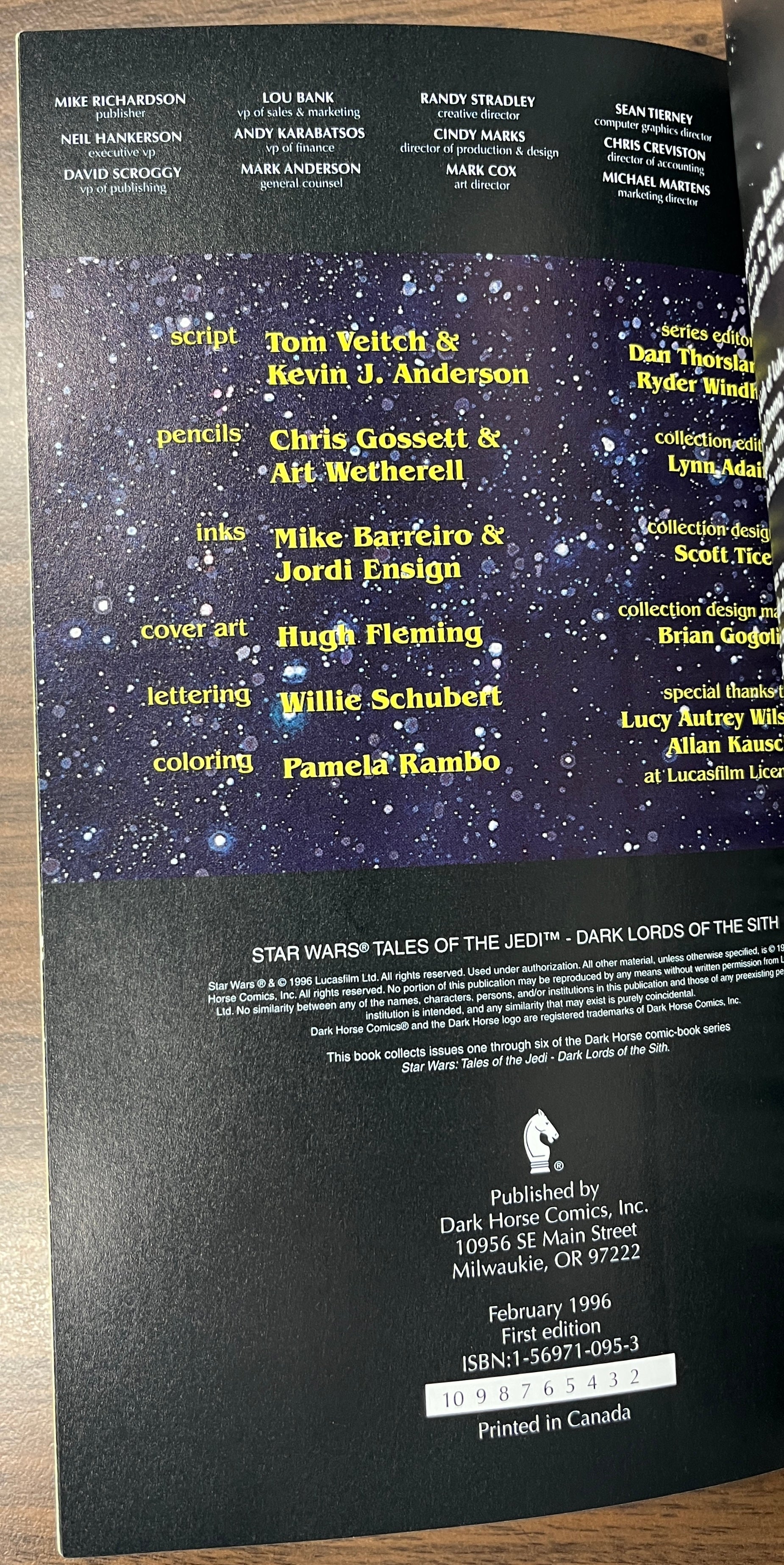Star Wars: Tales of the Jedi - Dark Lords of the Sith Graphic Novel TPB, 1st Ed. Dark Horse
