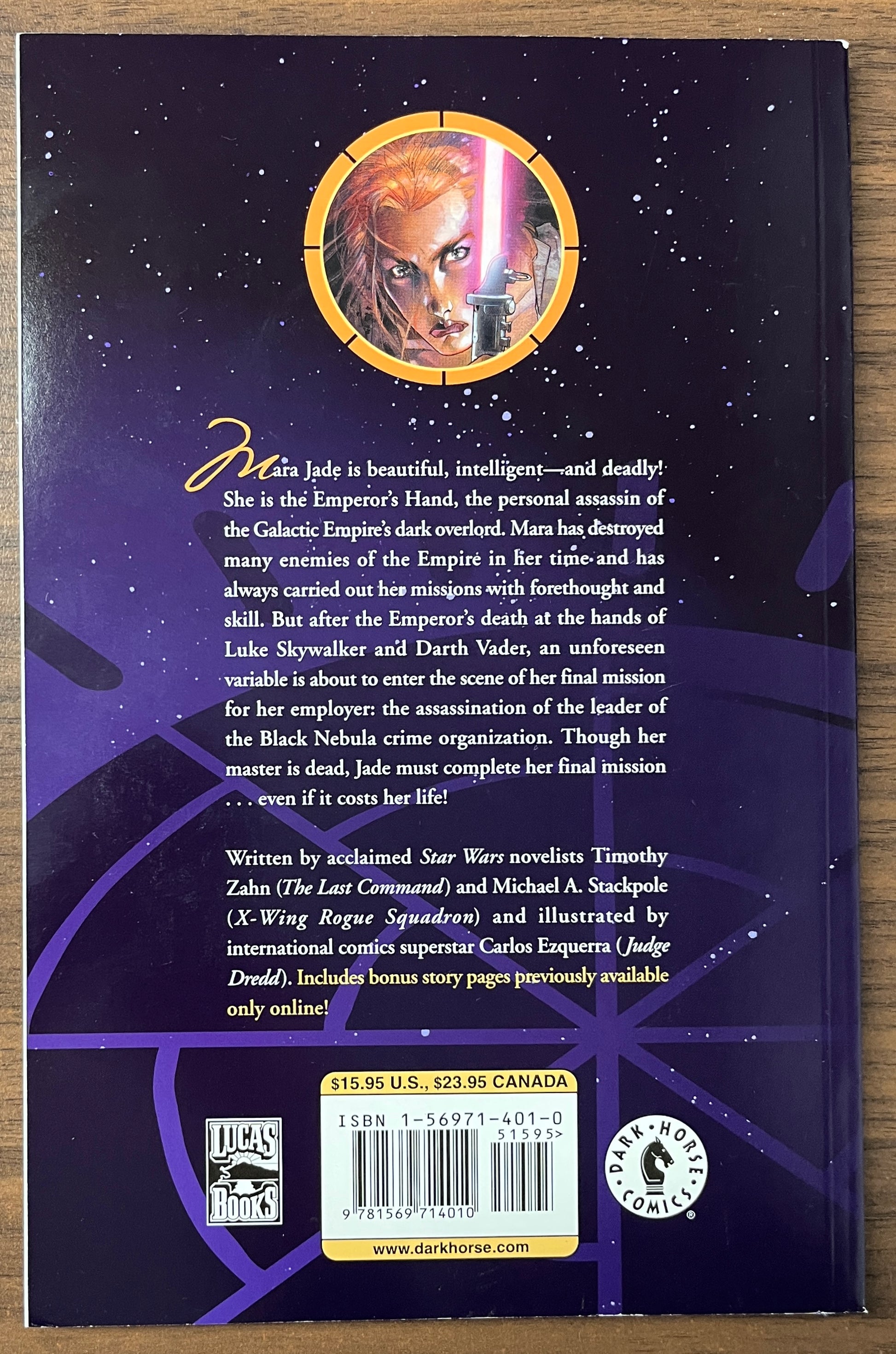 Mara Jade is beautiful, intelligent--and deadly! She is the personal assassin of the Empire's dark overlord. But after the Emperor's death, an unforeseen variable is about to enter the scene of her final mission, the assassination of the leader of the Black Nebula crime organization. Though her master is dead, Jade must complete her final mission...even if it costs her life!