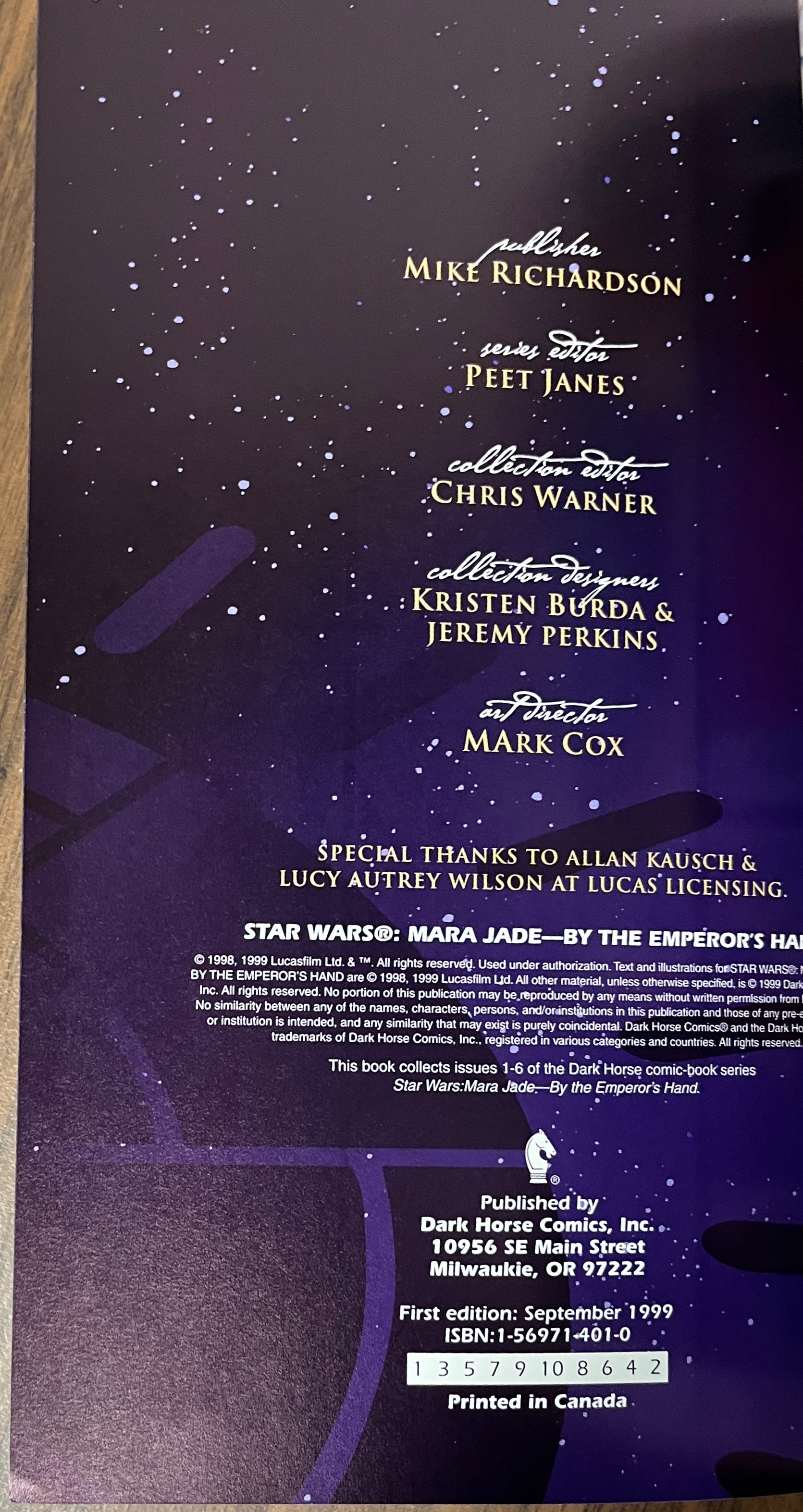 Star Wars: Mara Jade, By the Emperor's Hand Graphic TPB Timothy Zahn Dark Horse 1999, 1st Print