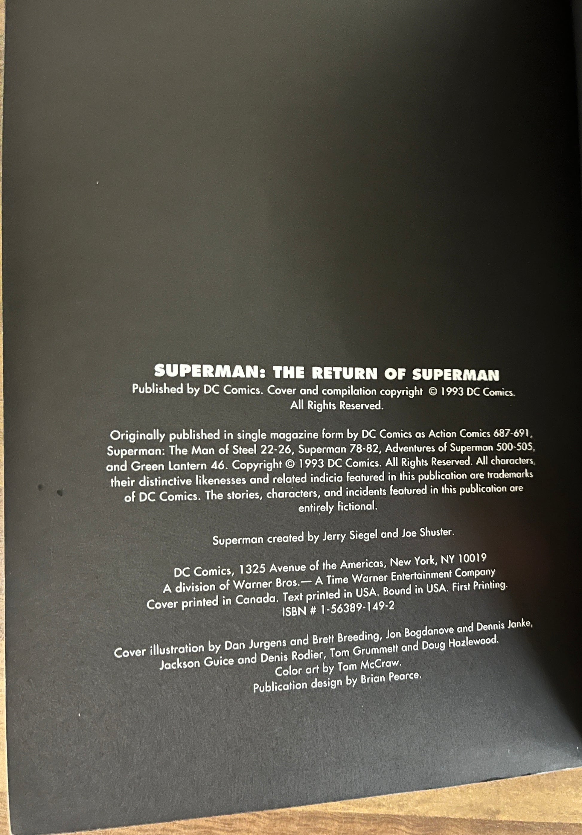 Superman: The Return of Superman Comic Book TPB - Dan Jurgens, L. Simonson et al 1993