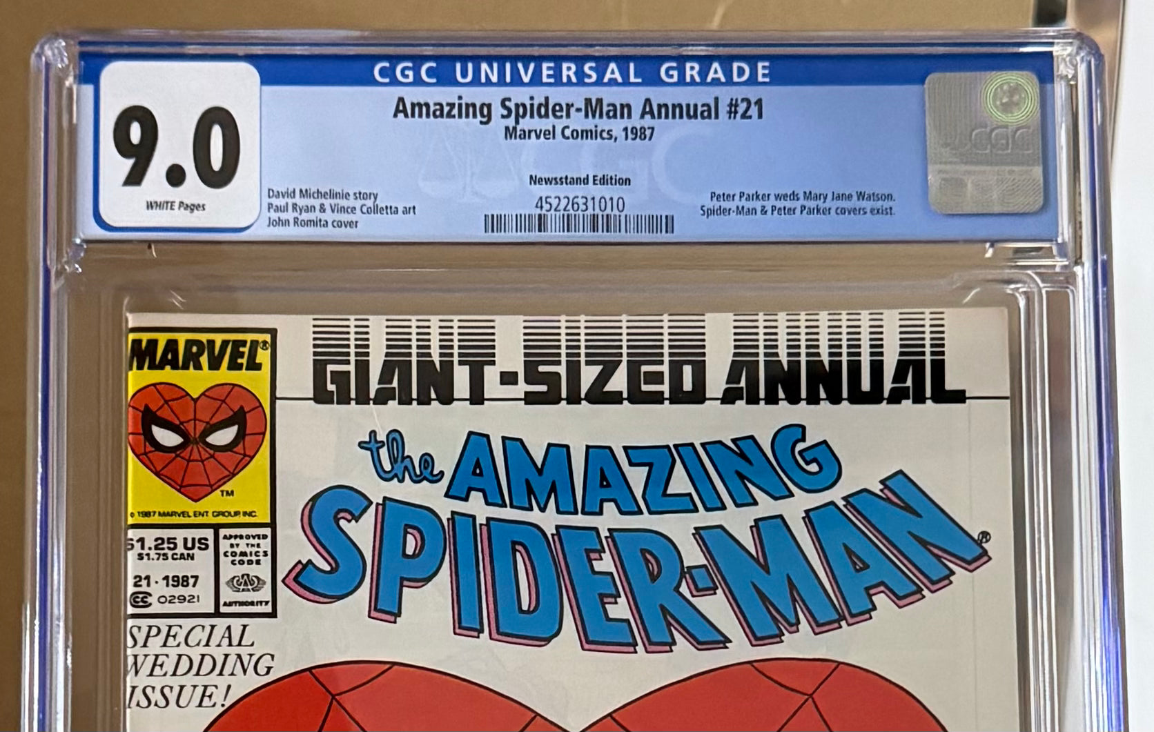 ![π AMAZING SPIDER-MAN ANNUAL #21 CGC 9.0 [MARVEL] NEWSSTAND WEDDING COMIC 1987](http://comiccollector.com.au/cdn/shop/files/CGC4522631-010_REV.jpg?v=1765179884&width=1445)
