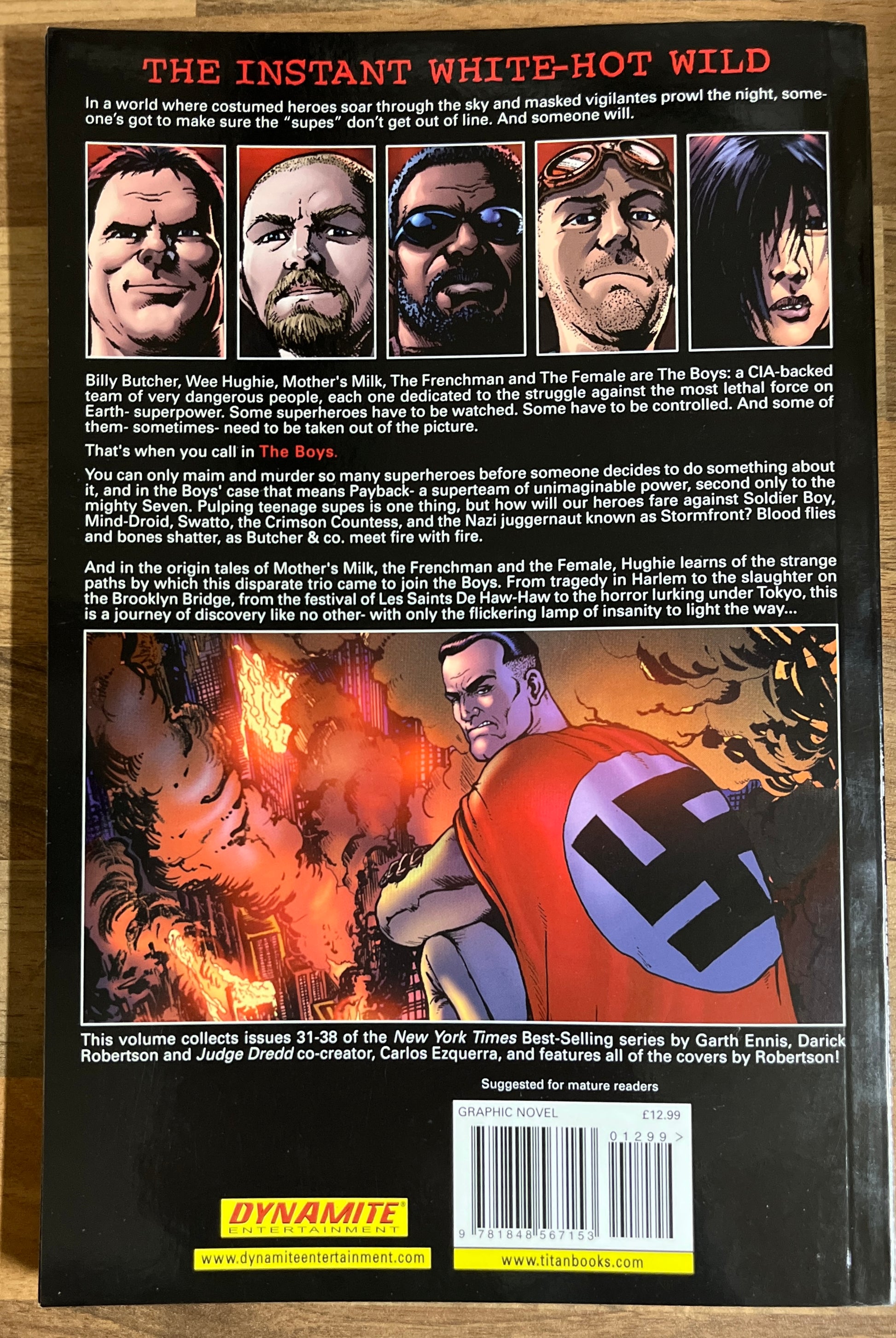 It had to happen sooner or later: the supes get mad enough to go after the Boys. One of the world's most powerful superteams decides to hit our heroes, all guns blazing, and the Female is the first to fall into their lethal trap. Pulping teenage supes is one thing, but how will our heroes fair against a front-rank supe team of unimaginable power? Blood flies and bones shatter, as Butcher decides to meet fire with fire...