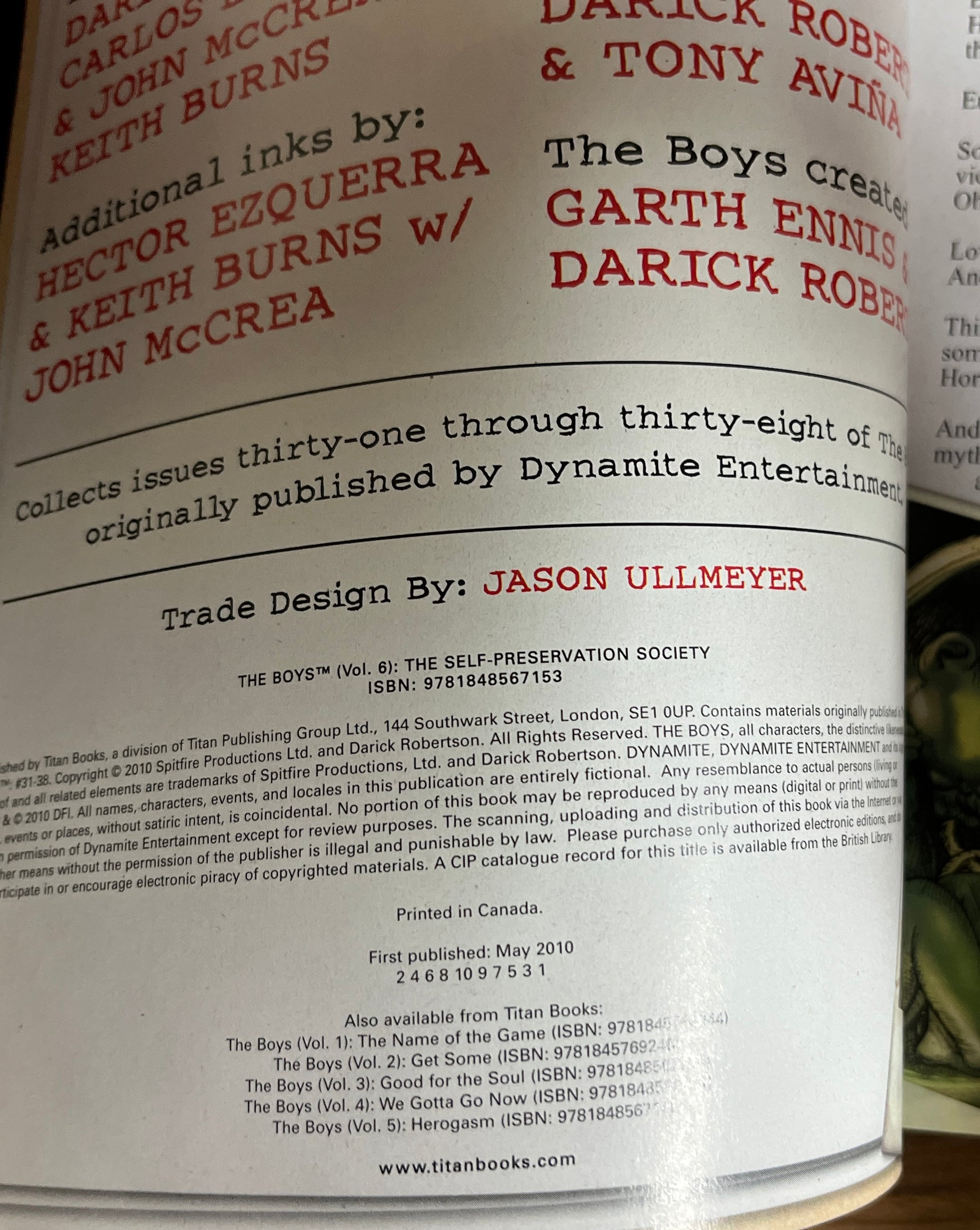 The Boys: Volume Six: THE SELF-PRESERVATION SOCIETY by Garth Ennis & Dustin Nguyen