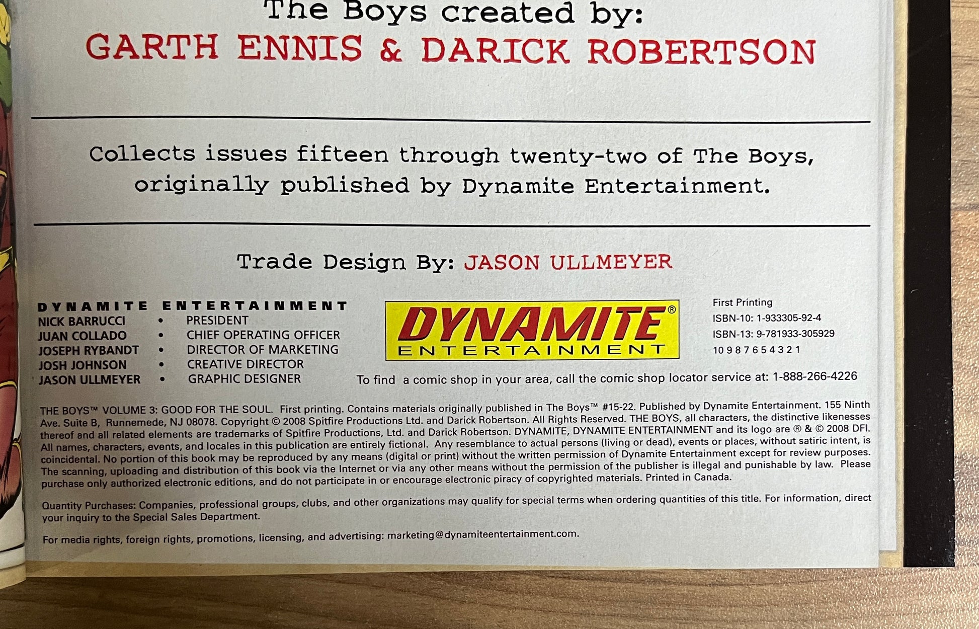 The Boys: Volume Three GOOD FOR THE SOUL by Garth Ennis & Darick Robertson