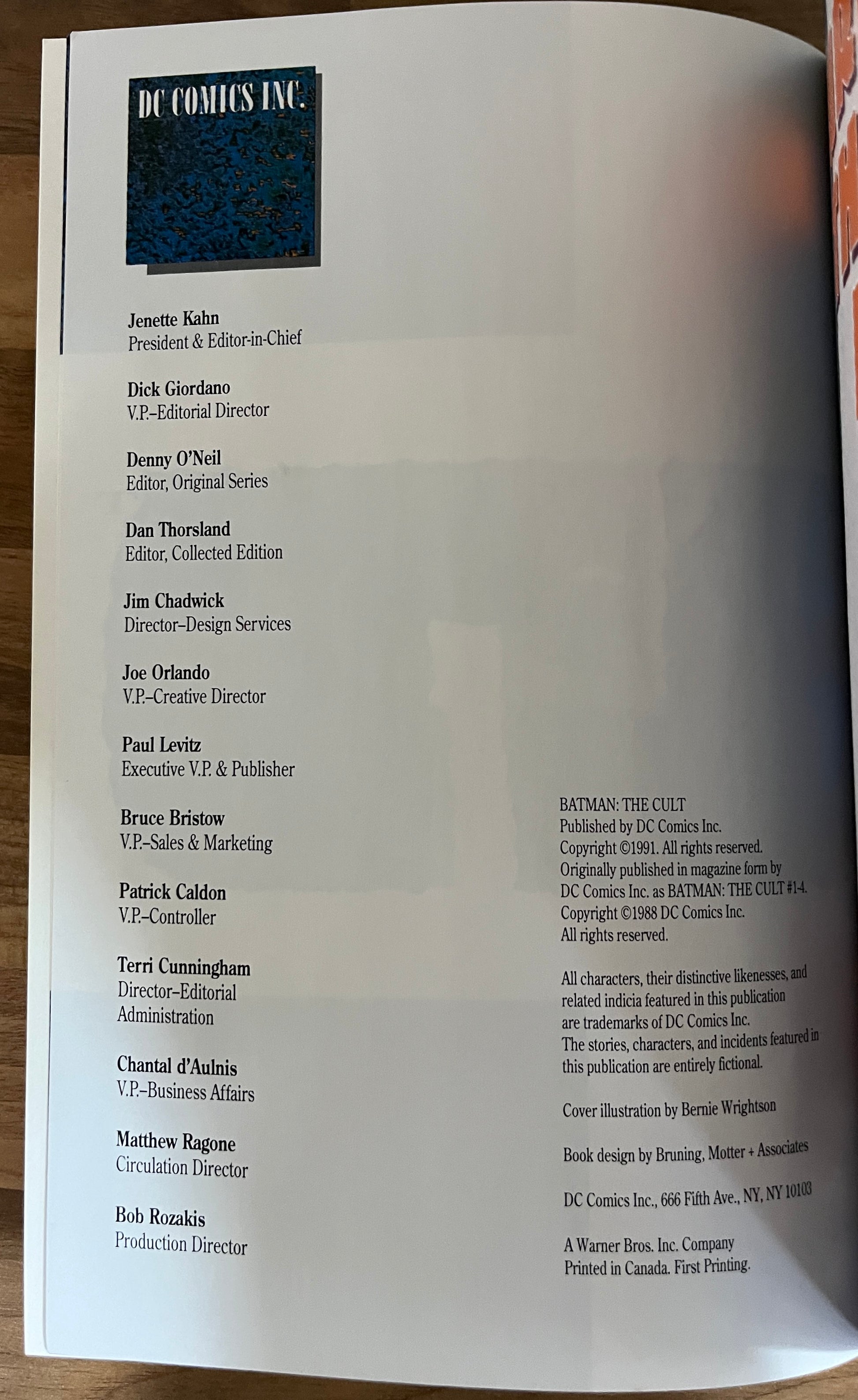 BATMAN: THE CULT , GRAPHIC NOVEL BY STARLIN, WRIGHTSON, WRAY