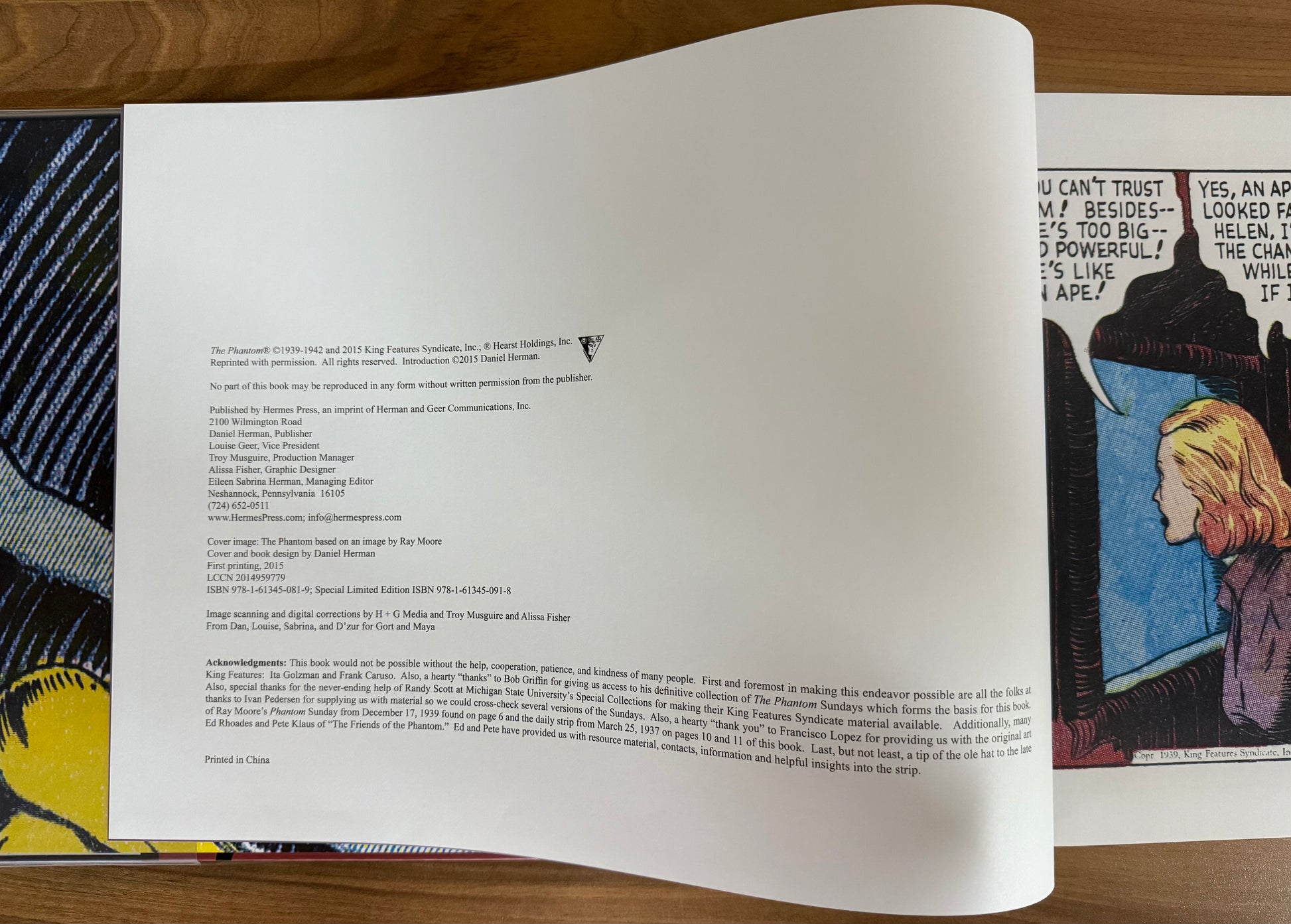 Full Product Description – book only: ‘The Phantom Sundays Archive: Full Size Half Pages 1939-1942’ is the 1st volume in a series of high-end Phantom Sunday strip reprint books from Hermes Press. This beautifully produced hardcover collects the first 4 years of the colour Lee Falk/Ray Moore Sunday stories and faithfully reproduces them at their original size, i.e. broadsheet, not tabloid! This book will have the same look and feel of the original newspaper strips, only in a high quality art book format. Full colour, 160 pg, 31.5 x 44.5 x 5 cm.
