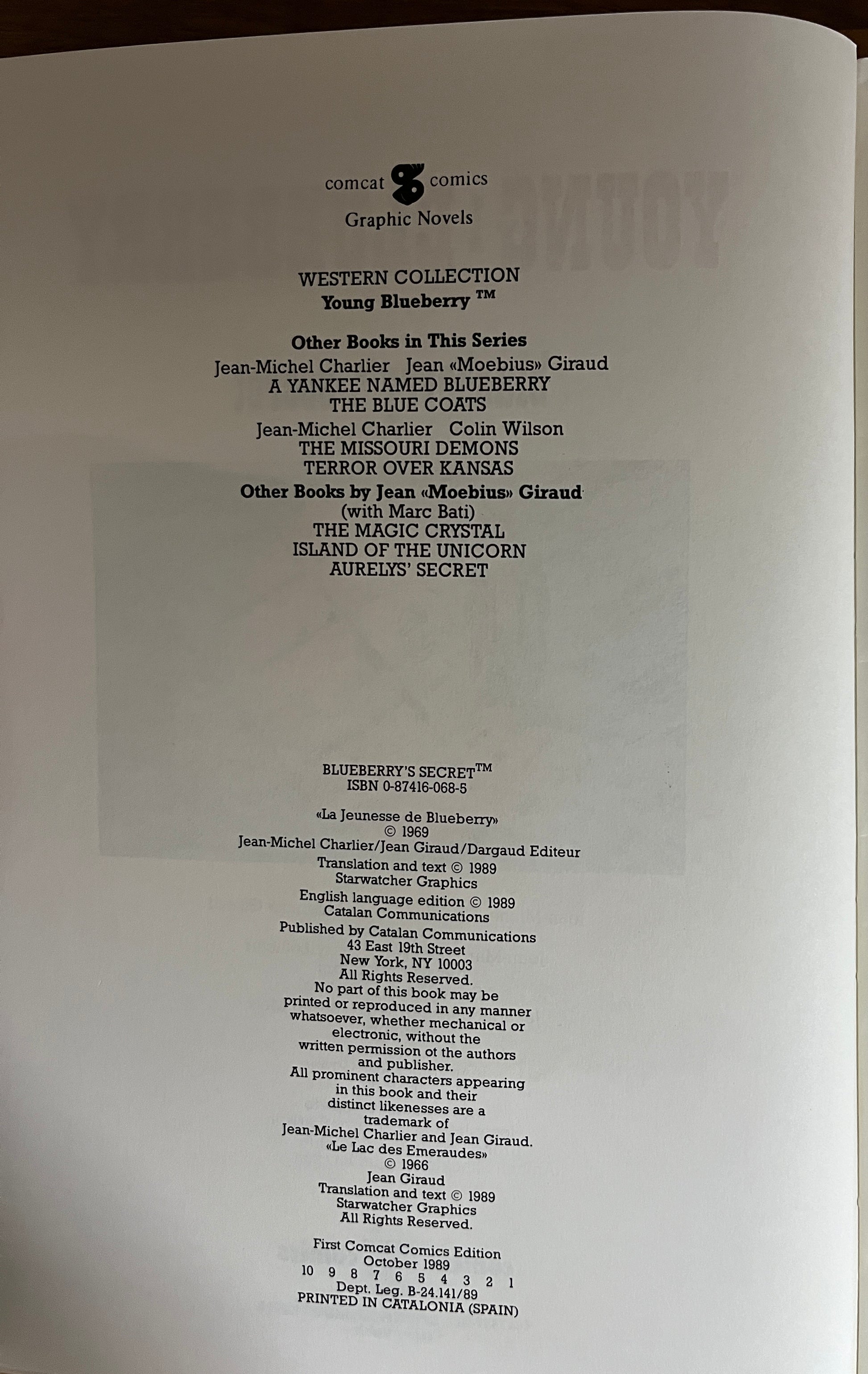 Young Blueberry, Volume 1: Blueberry's Secret by Charlier & Moebius, 1989, First Print
