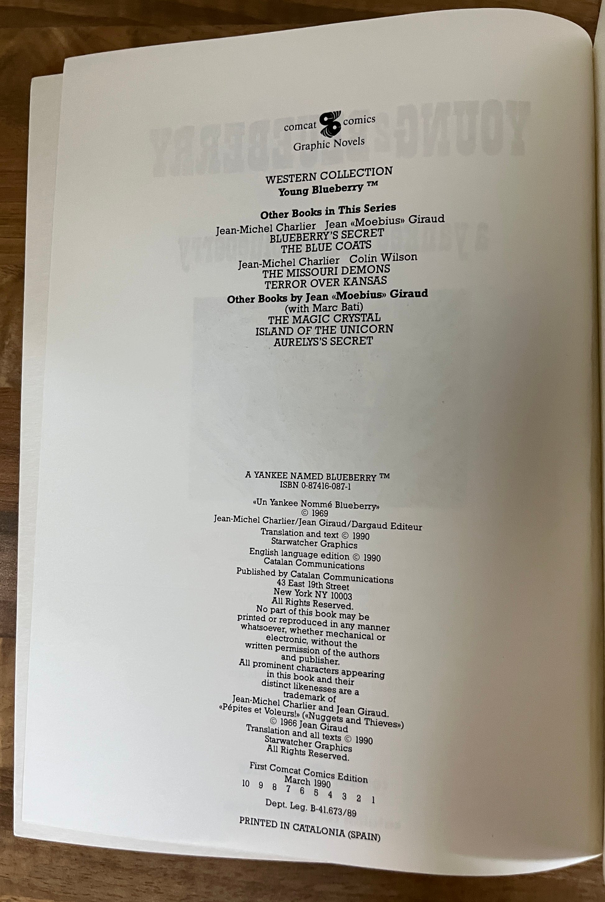 Young Blueberry, Volume 2: A Yankee Named Blueberry by Charlier & Moebius, 1990, First Print